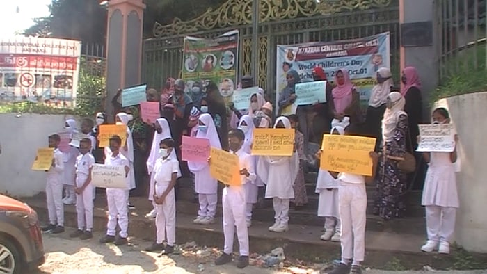 நீரெல்லை ஆரம்ப பாடசாலை மாணவ மாணவிகள் 24 பேர் பெற்றோர்களுடன் இனைந்து அக்குறணை அஸ்ஹர் தேசிய பாடசாலைக்கு முன் ஆர்ப்பாட்டம்