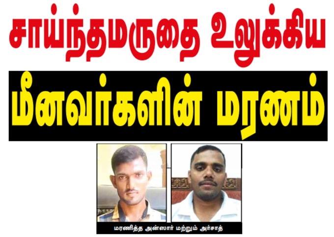 அம்பாறை மாவட்டம், கல்முனை மாநகரின் சாய்ந்தமருது பிரதேசத்திலிருந்து கடந்த இரண்டு நாட்களுக்கு முன்னர் மீன்பிடிக்காக கடலுக்குச் சென்ற அன்ஸார் என்றழைக்கப்படும் இப்ராஹிம் இக்பால் (வயது – 42), எம்.எஸ்.அர்சாத் (வயது-35) ஆகிய இரு மீனவர்கள் மின்னல் தாக்குதலுக்கு இலக்காகி ஜனாஸாவாக கரை திரும்பிய சோகம் கடந்த வெள்ளியன்று இரவு சாய்ந்தமருதில் பதிவானது. இவர்களின் ஜனாஸாக்கள் கல்முனை அஷ்ரப் ஞாபகார்த்த வைத்தியசாலையில் வைக்கப்பட்டு, பின்னர் அடுத்தநாள் நல்லடக்கம் செய்யப்பட்டது. மேலும் காயமடைந்தவர்களும் கல்முனை அஷ்ரப் ஞாபகார்த்த வைத்தியசாலையில் அனுமதிக்கப்பட்டு தொடர்ந்தும் சிகிச்சை பெற்று வருகிறார்கள். இதுதொடர்பிலான தமிழனின் பத்திரிகையில் வந்த விசேட தொகுப்பு