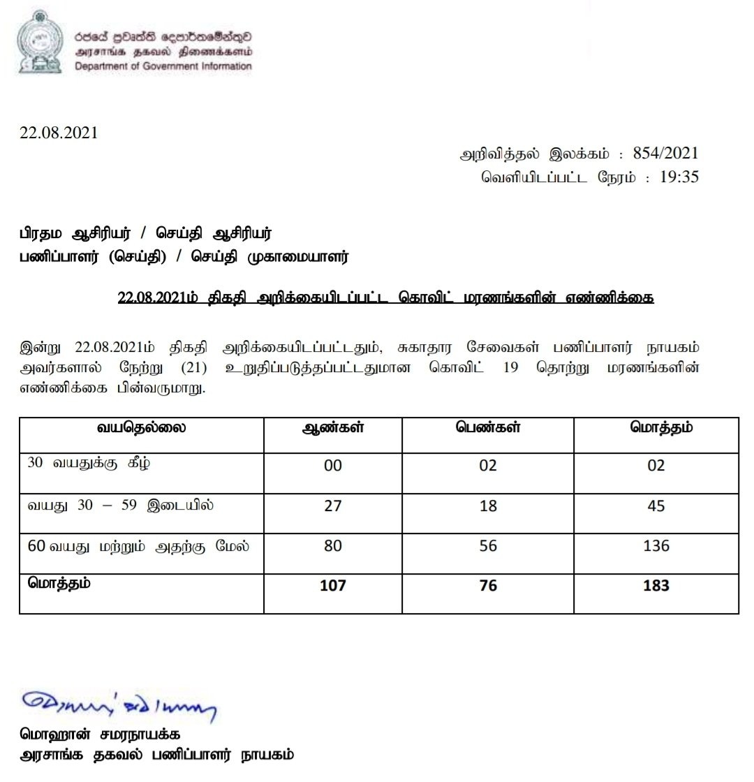 ஓகஸ்ட் 21 – 183 பேர் (7,366)