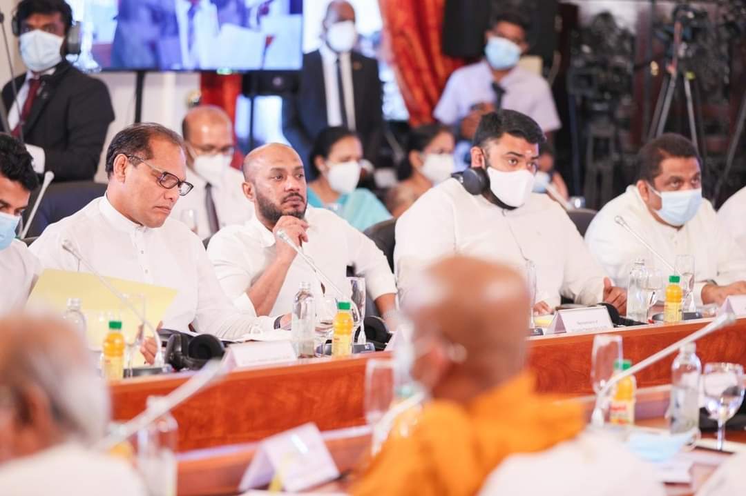 தற்போதைய சூழலில் நாட்டையும் மீட்டெடுப்பதற்கு பங்களிப்பு வழங்க வேண்டும் என்பது தொடர்பாக இந்த கட்சியின் முக்கிய பிரமுகர்கள் ௧௬துவதாகவும் தெரிவிக்கப்படுகிறது. அந்த வகையில் 30 அமைச்சர்களைக் கொண்ட ஒரு சர்வ கட்சி அமைச்சரவை விரைவில் நியமிக்கப்படலாம். எனும் ஸ்ரீலங்கா சுதந்திரக் கட்சி ஜனாதிபதி ரணில் விக்ரமசிங்கவுக்கு முன்வைத்திருக்கின்ற சர்வ கட்சி அரசாங்கம் தொடர்பான யோசனைகளில் அமைச்சரவையானது 15 முதல் 20 வரை இடம்பெற வேண்டும் என்று கூறியிருக்கின்றது. என்னிடம் ஏற்கனவே ஸ்ரீலங்கா சுதந்திர கட்சியின் மகிந்த அமரவீர அமைச்சராக நியமிக்கப்பட்டிருக்கின்றார். எப்படி இருப்பினும் ஒரு சர்வ கட்சி அரசாங்கத்தை அமைக்க வேண்டும் என்பதே ஜனாதிபதி ரணில் விக்ரமசிங்கமின் நோக்கமாக காணப்படுகிறது. காரணம் சர்வதேச மட்டத்தில் பேச்சுவார்த்தைகள் நடத்தி உதவிகளை பெற்றுக் கொள்வதற்கு இலங்கையில் ஒரு அரசியல் ஸ்திரத்தன்மை உருவாக்கப்பட வேண்டும். அவ்வாறான ஒரு அரசியல் தன்மை உருவாக்கப்பட வேண்டுமாயின் நாட்டில் சர்வ கட்சி அரசாங்கம் அமைக்கப்பட வேண்டும். அதனூடாகவே சர்வதேசத்தின் நம்பிக்கையை வெற்றி கொள்ள முடியும். ஐக்கிய மக்கள் சக்தியின் பாராளுமன்ற உறுப்பினராக இருந்து தற்போது சுயாதீனமாக செயல்படுகின்ற பாராளுமன்ற உறுப்பினர் சம்பிக்க ரணவக்கவும் தமது யோசனைகள் ஜனாதிபதி ரணில் விக்ரம்சிங்கவினால் ஏற்றுக் கொள்ளப்படும் பட்சத்தில் சர்வ கட்சி அரசாங்கத்தில் இணைந்து கொள்வதாக அறிவித்திருந்தார்.