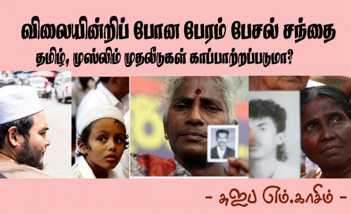 பேரம்பேசல் விலையின்றிப்போன சந்தையில் இலாபத்தைப் பார்க்காது முதலையாவது காப்பாற்றும் வணிக வியூகம் அவசியம். இதே அரசியல் சந்தையில் தமிழ் பேசும் தலைமைகள் காப்பாற்றவுள்ள சமூக முதலீடுகள் எவை? “பாராளுமன்றத்துக்குப் பொறுப்புக் கூறாத நிறைவேற்று அதிகார ஜனாதிபதி முறைமை, தனி நபர் ஒருவரை நெப்போலியன் ஆக்கலாம் அல்லது முசோலினியாக மாற்றலாம். சட்டத்தின் ஆட்சி மதிப்பிழந்தால் ஜனநாயகத்தின் நிலை என்னவாகும்?” என்றெல்லாம் நீதி மன்றத்தில் இருபதாவது திருத்தம் வழக்காடப்படுகிறது. மேலும், இந்த இருபது பாராளுமன்றம் நிராகரிக்கும் ஏதாவதொரு சட்டமூலத்தை சர்வஜன வாக்கெடுப்பால் நிறைவேற்ற ஜனாதிபதிக்கு அதிகாரம் வழங்குகிறது. ஜனாதிபதி மற்றும் பிரதமர் செயலகங்களின் செலவினங்களை, கணக்காய்விலிருந்தும் விடுவித்துள்ள இந்த இருபது, கணக்காய்வாளர் நாயகத்தின் நியமனத்தையும் ஜனாதிபதிக்கு வழங்கி, அவருக்கு இருக்க வேண்டிய தகுதிகளையும் மறைத்துள்ளது. எனவே, சிறுபான்மைச் சமூகங்களுக்கு இதிலுள்ள முதல்களையாவது சிந்தித்தே செயலாற்ற வேண்டி உள்ளன இத்தலைமைகள்.