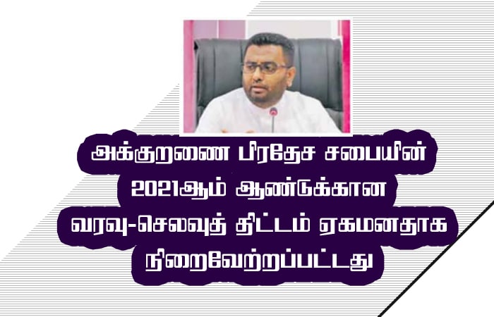 அக்குறணை பிரதேச சபையின் 2021ஆம் ஆண்டுக்கான வரவு-செலவுத் திட்டம் பிரதேச சபை தலைவர் இமாதுதீன் இஸ்திகாரினால் சபையில் முன்வைக்கப்பட்ட போது அதிகப்படியான வாக்குகளினால் மேற்படி வரவு-செலவுத் திட்டம் நிறைவேற்றப்பட்டது.