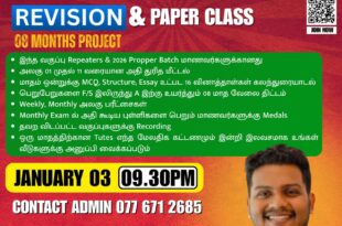 புதிய தரம் 10, 11 Musthaq’s Science விஞ்ஞானப் பாட வகுப்புகள் ஆரம்பமாகின்றன எமது விஞ்ஞான வகுப்பின் 8 ஆவது …