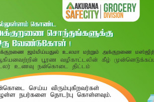 நல்லுள்ளம் கொண்ட அக்குறணை சொந்தங்களுக்கு ஒரு வேண்டுகோள்.அக்குறணை ஜம்மியத்துல் உலமா மற்றும் அக்குறணை மஸ்ஜித்கள் சம்மேளனம் ஆகியவற்றின் பூரண வழிகாட்டலில் …