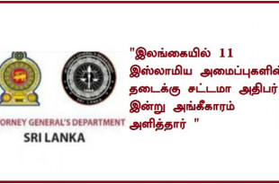 Read More »இலங்கையில் 11 இஸ்லாமிய அமைப்புக்களுக்கு தடை – சட்டமா அதிபர் அனுமதி (முழு விபரம்)